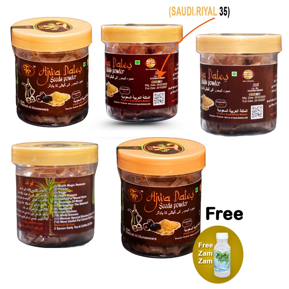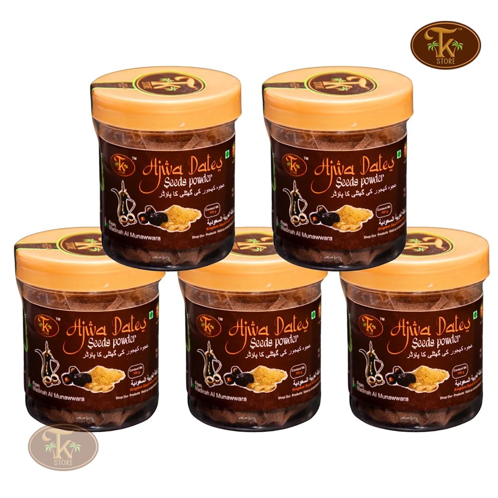 Experience the authentic goodness of Ajwa Dates Seeds Powder, sourced directly from the holy city of Madinah. This pack of 5 ensures you always have a fresh supply of this natural health booster. Known for its nutritional benefits, Ajwa Dates Seeds Powder can support digestion, boost immunity, and improve overall wellness. Perfect for daily use, smoothies, or as a supplement to your diet. Each pack is carefully processed to retain its natural flavor and quality.