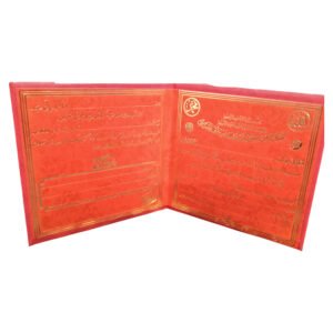 Carry Bag Square Pouch Lal Khat ek royal aur stylish gift pouch hai jo specially shaadi, engagement, nikah, birthday aur festive gifting ke liye design kiya gaya hai. Iska Lal Khat Shahi Farman design ise ek premium aur traditional look deta hai, jo aapke gifts ko classy aur memorable banata hai.