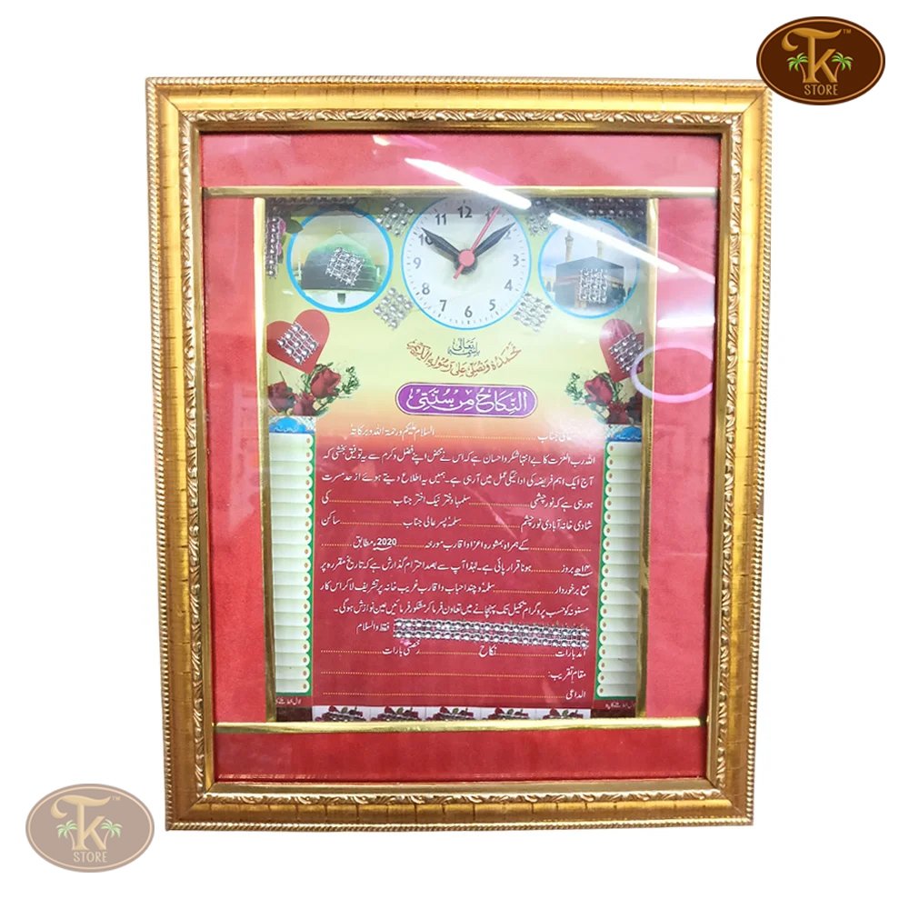 Small Size Clock Lal Khat Macca Madina Print Design ek khubsurat aur spiritual wall clock hai jo apke ghar ko ek classy aur Islamic touch deta hai. Iska Lal Khat frame shahi farman style mein design kiya gaya hai jo ek royal look create karta hai, jabki Macca aur Madina ka sacred print ise aur bhi barkat aur noor se bhar deta hai.